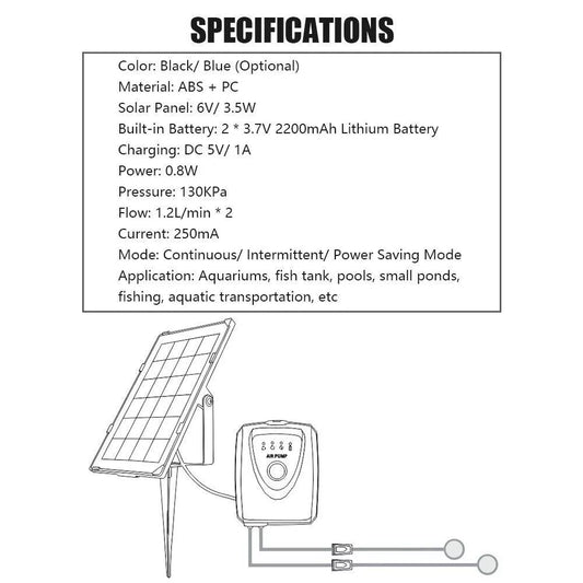 Solar Pond Air Pump – 3 Modes, Dual Airflow – Solar-Powered Oxygenator for Fish Ponds, Aquariums, and Pools