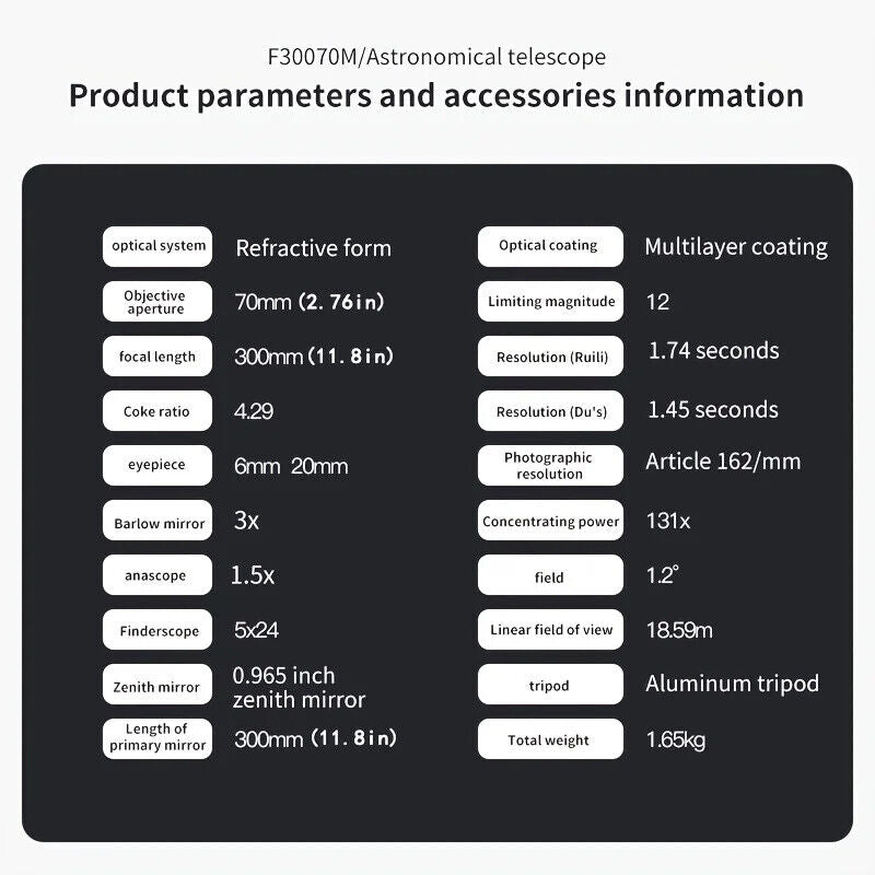 Explore the night sky and beyond with this high-quality astronomical telescope. Perfect for beginners and seasoned stargazers alike, it makes a fantastic gift for anyone interested in astronomy. Order now and start your journey through the stars!